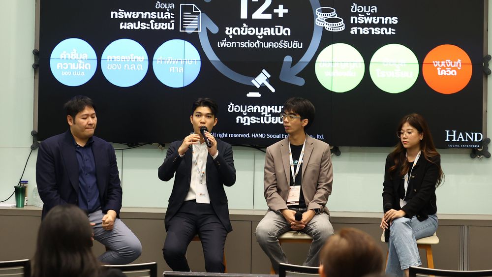 การเสวนาประเด็น “Open Government & Open Data” หัวข้อ “เปิด” ข้อมูลเพื่อสร้างนิติธรรมในสังคม (Open Data for Justice) วงเสวนานี้ เป็นส่วนหนึ่งของกิจกรรมคู่ขนานในงาน "Thailand Rule of Law Fair 2025 งานแฟร์เพื่อความแฟร์” ที่จัดขึ้นในหัวข้อ “Investing in the Rule of Law for a Sustainable Future” โดยสถาบันเพื่อการยุติธรรมแห่งประเทศไทย (TIJ) ร่วมกับเครือข่ายผู้นำด้านหลักนิติธรรมและการพัฒนาที่ยั่งยืน (RoLD) The World Justice Project (WJP) และสำนักข่าว The Standard เมื่อวันที่ 8 กุมภาพันธ์ 2568 ดำเนินการเสวนาโดย คุณกิตติเดช ฉันทังกูล ผู้อำนวยการ องค์กรต่อต้านคอร์รัปชัน (ประเทศไทย) คุณณัฐภัทร เนียวกุล หัวหน้าฝ่ายข้อมูลเปิดเพื่อความโปร่งใสและการมีส่วนร่วม บริษัท แฮนด์ วิสาหกิจเพื่อสังคม จำกัด คุณภัณฑิรา มั่นสัมฤทธิ์ Assistant to CEO และคุณวิถี ภูษิตาศัย Technical Lead Punch Up & WeVis ผู้ร่วมวงเสวนา